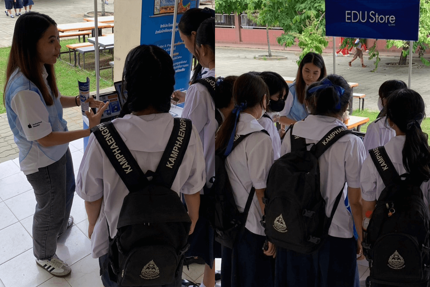 🏫 พบกับพี่ไอซ์ สุคนธา แซ่เล่า (Apple Professional Learning Specialist) เสิร์ฟโปรโมชันสุดว้าวที่ถูกใจน้อง ๆ นักเรียนแบบสุด ๆ ในงานเปิดบูธกิจกรรมแนะนำโครงการสินค้า Apple ราคาเพื่อการศึกษาที่จังหวัดกำแพงเพชร และให้คำแนะนำอย่างใกล้ชิดเพื่อให้ได้เลือก MacBook และ iPad ได้ตรงรุ่น ตรงกับการใช้งานจริงและเหมาะสมอย่างคุ้มค่าที่สุด