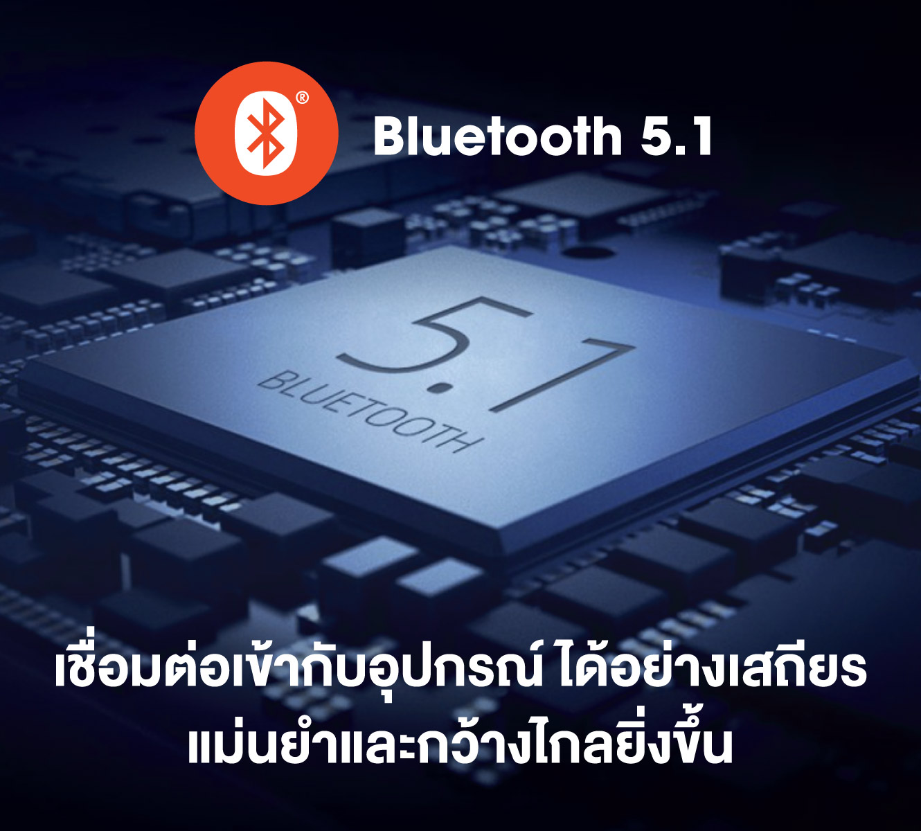 - เชื่อมต่อลำโพงเข้ากับอุปกรณ์ได้อย่างเสถียร แม่นยำและกว้างไกลยิ่งขึ้น ด้วยบูลูทูธเวอร์ชั่น 5.1 ทำให้คุณสตรีมเพลงได้อย่างไหลลื่นไม่สะดุด