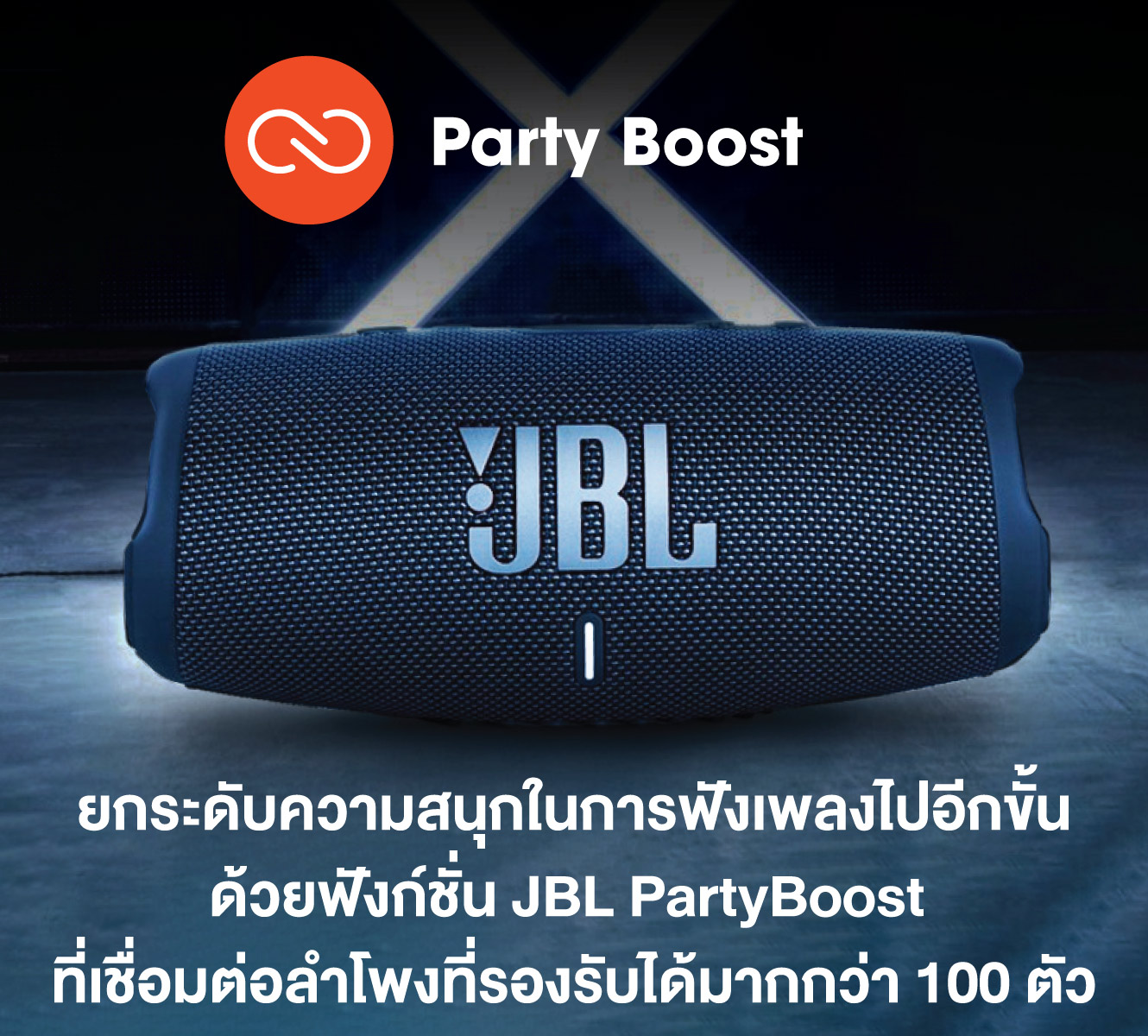 - ยกระดับความสนุกในการฟังเพลงไปอีกขั้นด้วยฟังก์ชั่น JBL PartyBoost ที่เชื่อมต่อลำโพงที่รองรับได้มากกว่า 100 ตัว